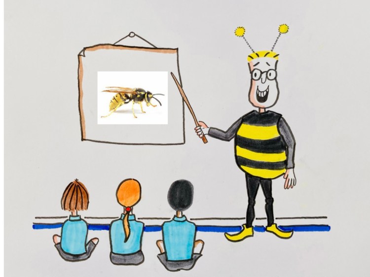 “Hang on! How come we get lumped in the same book as wasps? Wasps are pricks! Have you put us in the same book as those bastards just because we wear vaguely similar stripey jumpers? How superficial can you get? That’s like us writing a book called “GPs in Chorley and Alabama Death Row Inmates” because you wear roughly the same surgical scrubs!”